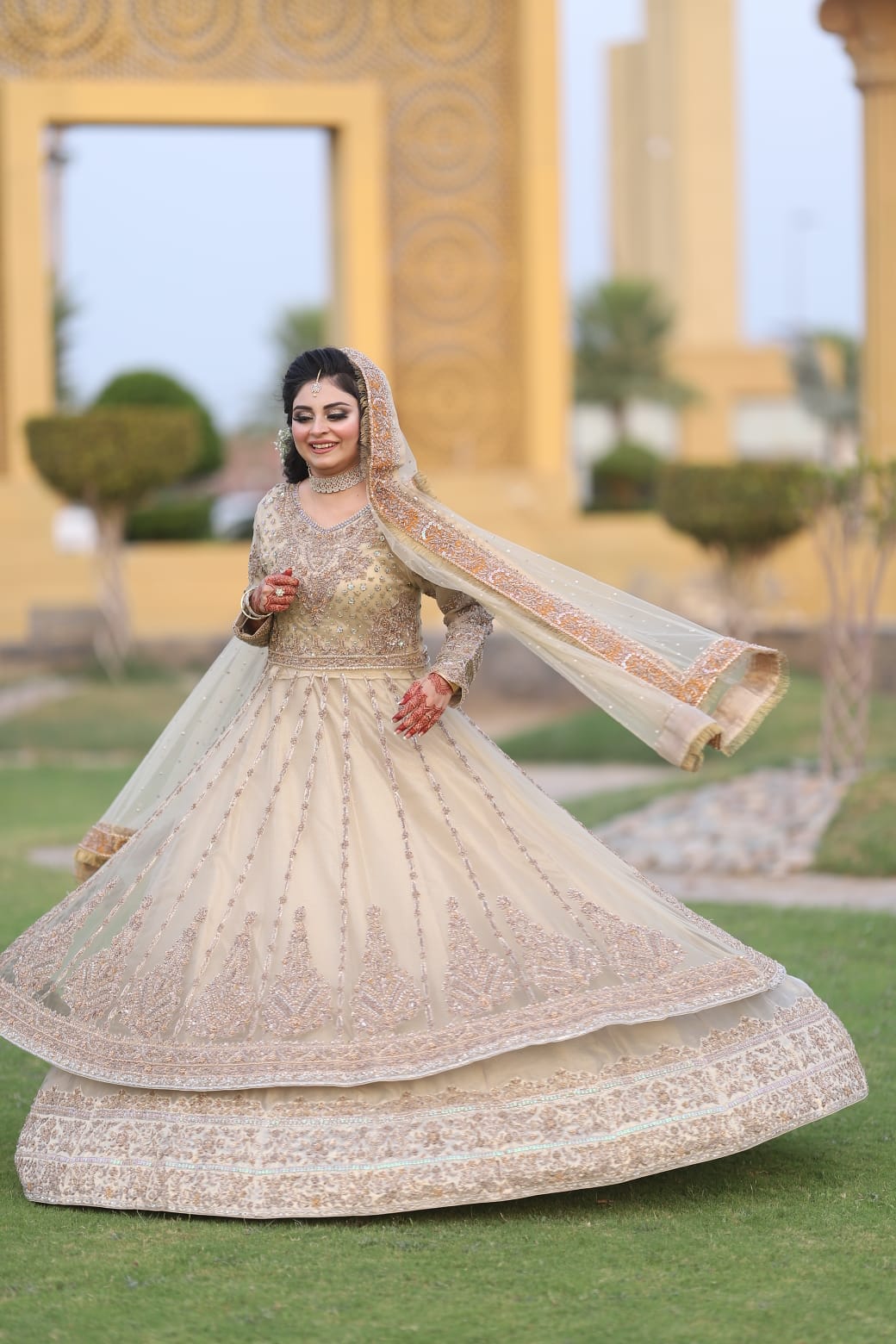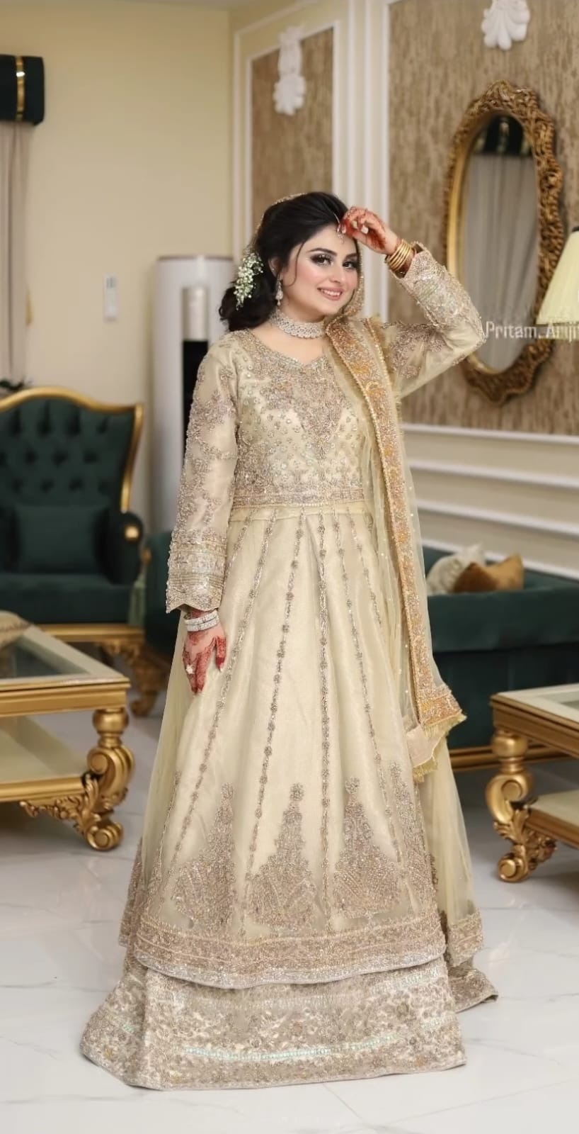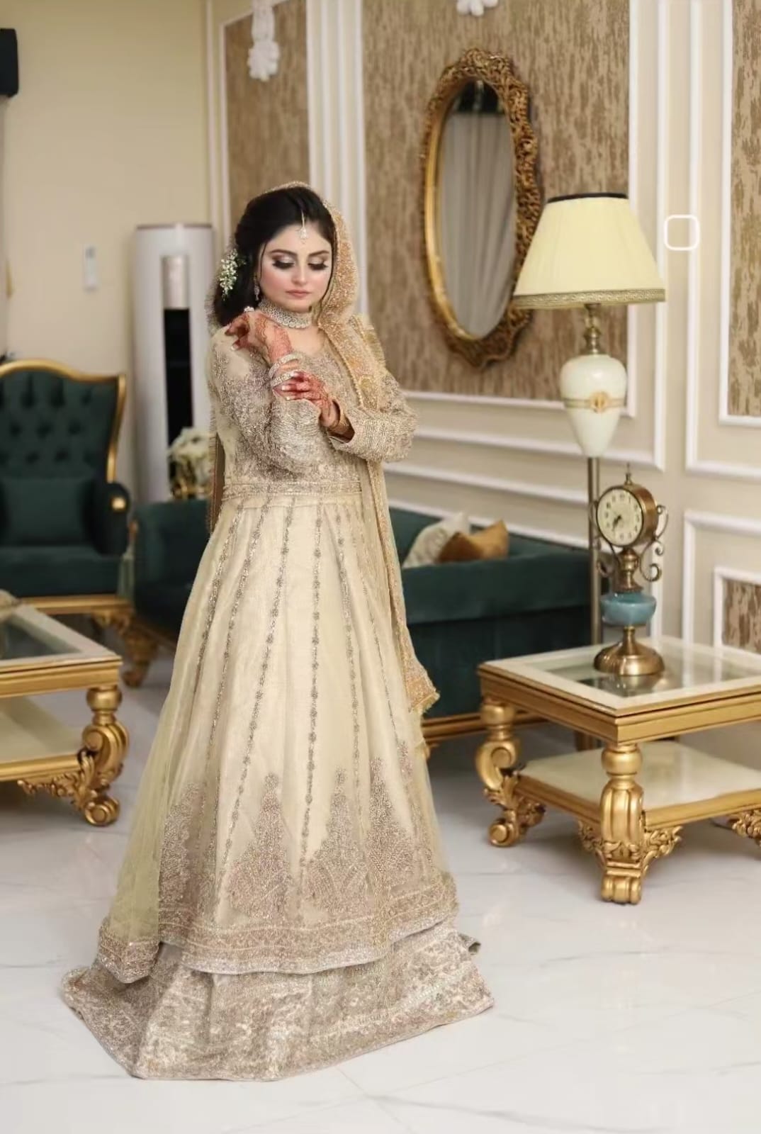 Fabric : Net Lehnga : Lama tissue Work type : zari, zardozi, dapka, pearls and a variety of stones and sequins